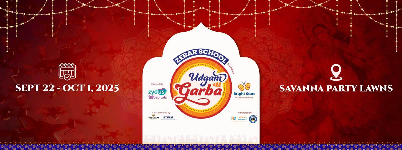 Udgam na Garba is Ahmedabad’s most loved family Garba festival, where tradition meets grandeur. Returning with Season 2, the event will light up Savanna Party Lawns from 22nd September to 1st October 2025 with 10 spectacular nights of dance, music, and devotion.